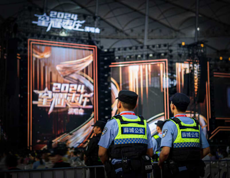 “星耀枣庄”演唱会现场,枣庄公安执勤民警辅警守护群众平安。