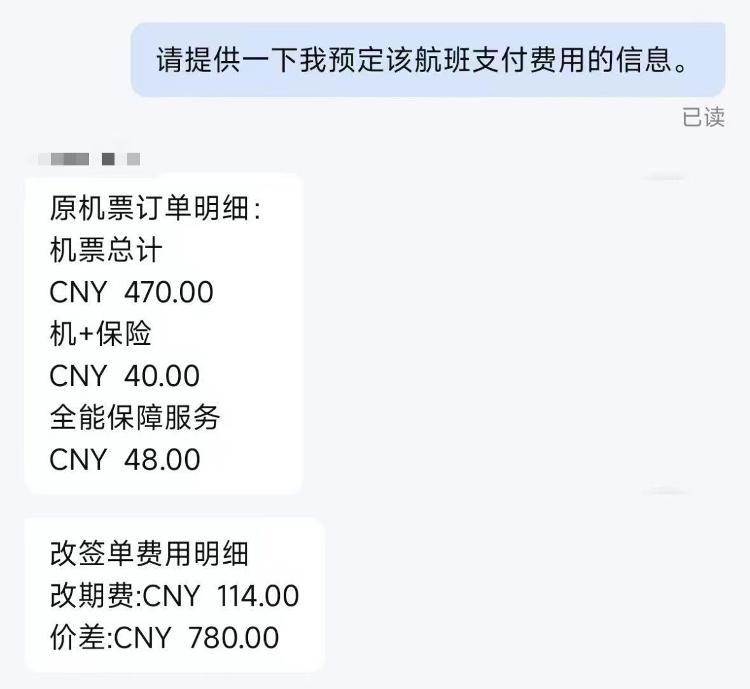 11日上午,平台客服人员告诉记者,汤先生于2025年12月16日购买了一趟12月30日从北京大兴飞往湖北宜昌的中国国航航班机票,当时花费的费用总计为558元(含机票470元、保险40元、全能保障服务48元)。后于12月26日早上6时40分提交了改签至27日起飞的申请,由于飞行时间临近,机票价格实时浮动,新票价高于原价,因此产生了780元差价及114元手续费,共计894元。