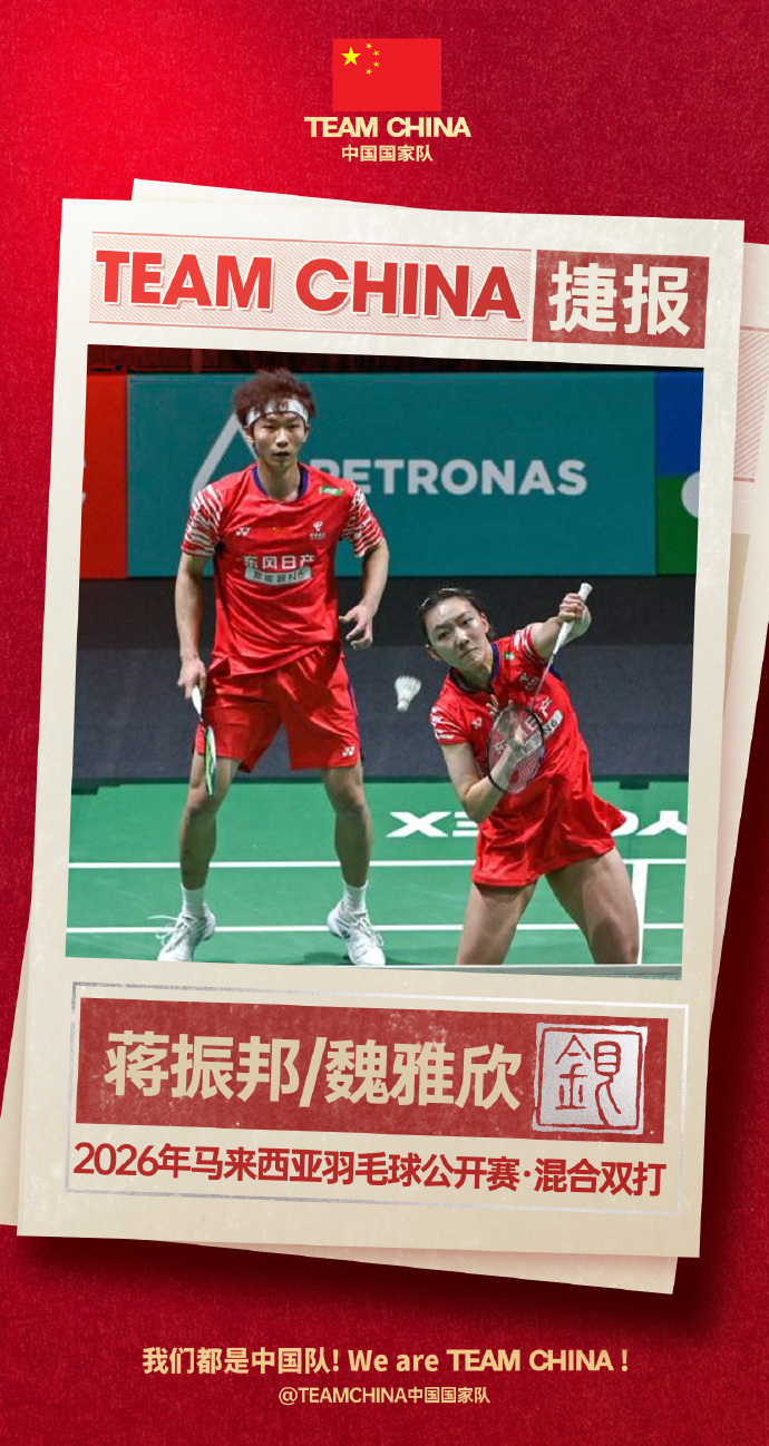 北京时间1月11日,马来西亚羽毛球公开赛进入各单项决赛。混双决赛中,冯彦哲/黄东萍以21-19、21-19战胜蒋振邦/魏雅欣,夺得2026年马来西亚公开赛混双冠军,蒋振邦/魏雅欣获得亚军。中国队包揽混双冠亚军祝贺!(央视新闻)