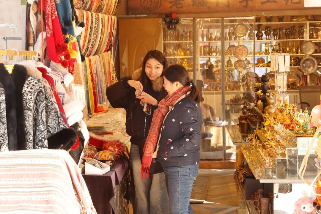 喀什古城内游客购买旅游纪念品。喀什地区融媒体中心 记者陈文军 摄