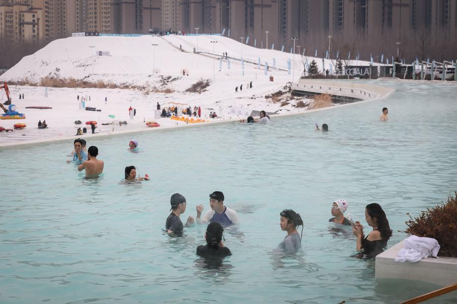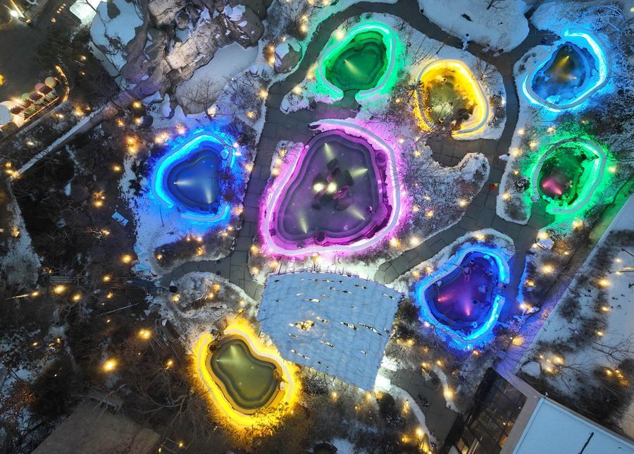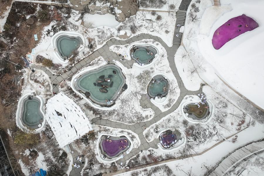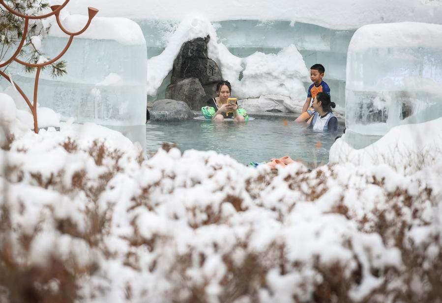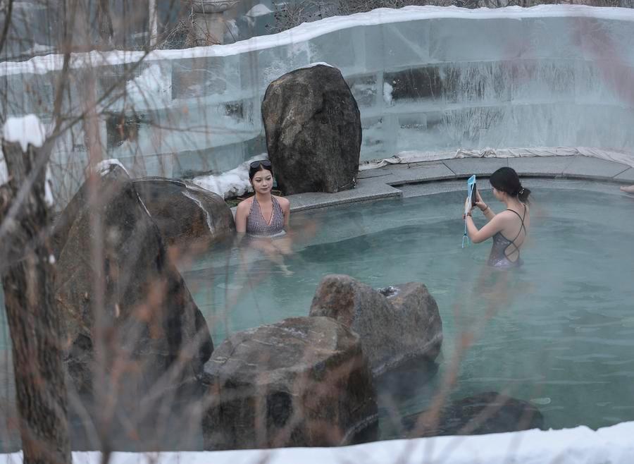 Visitors enjoy outdoor hot spring at a hot spring resort in Shenyang, northeast China's Liaoning Province, Jan. 9, 2026. (Xinhua/Pan Yulong)