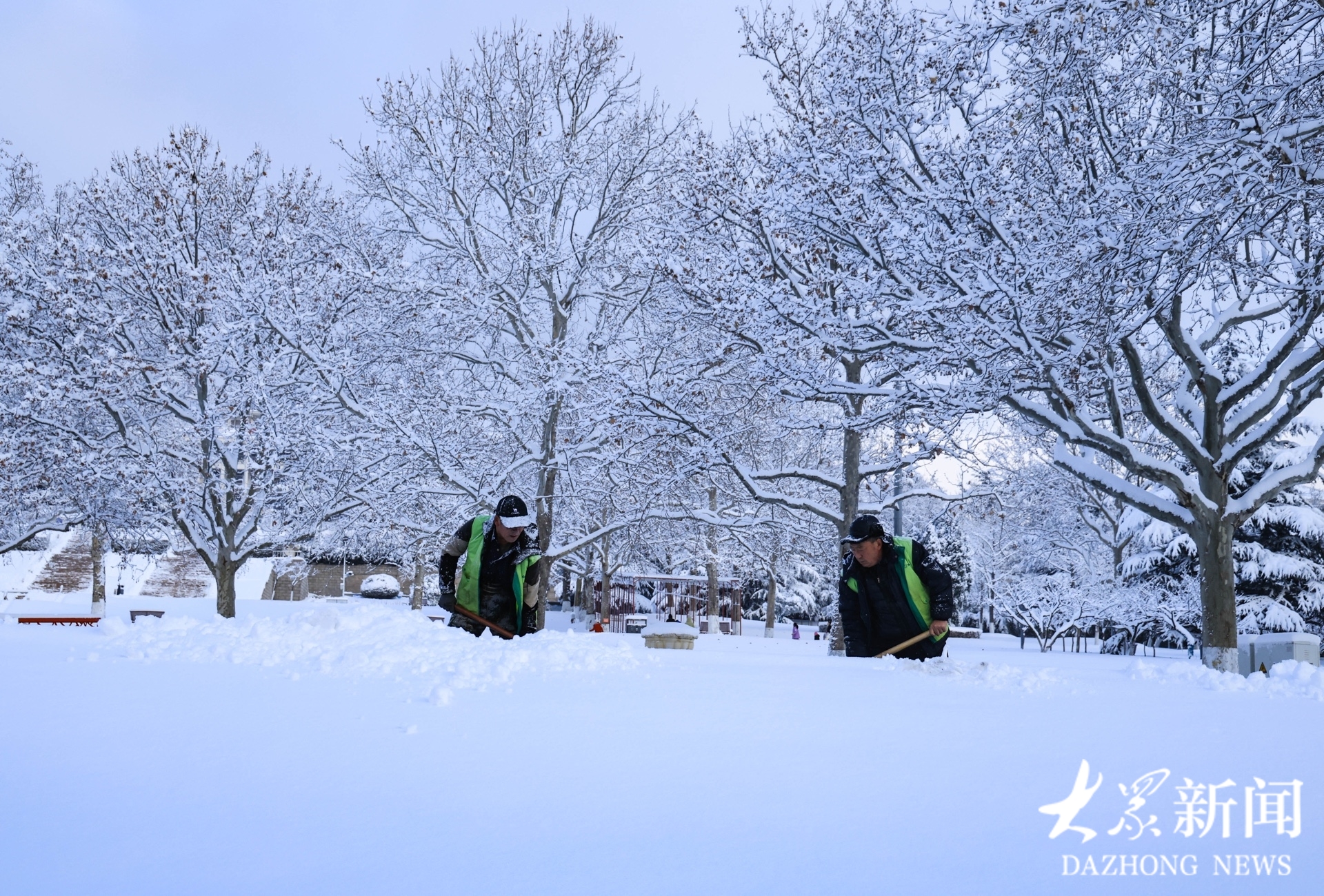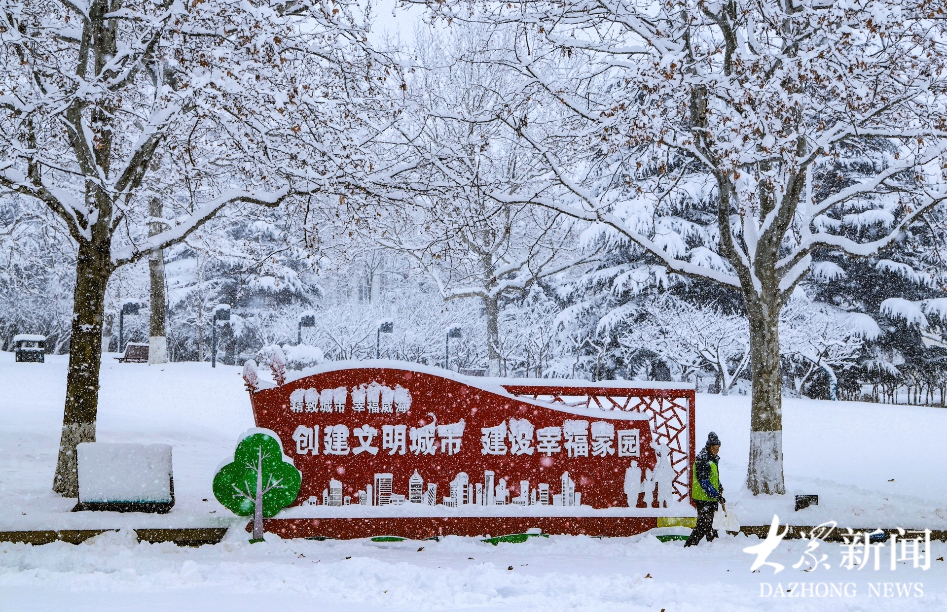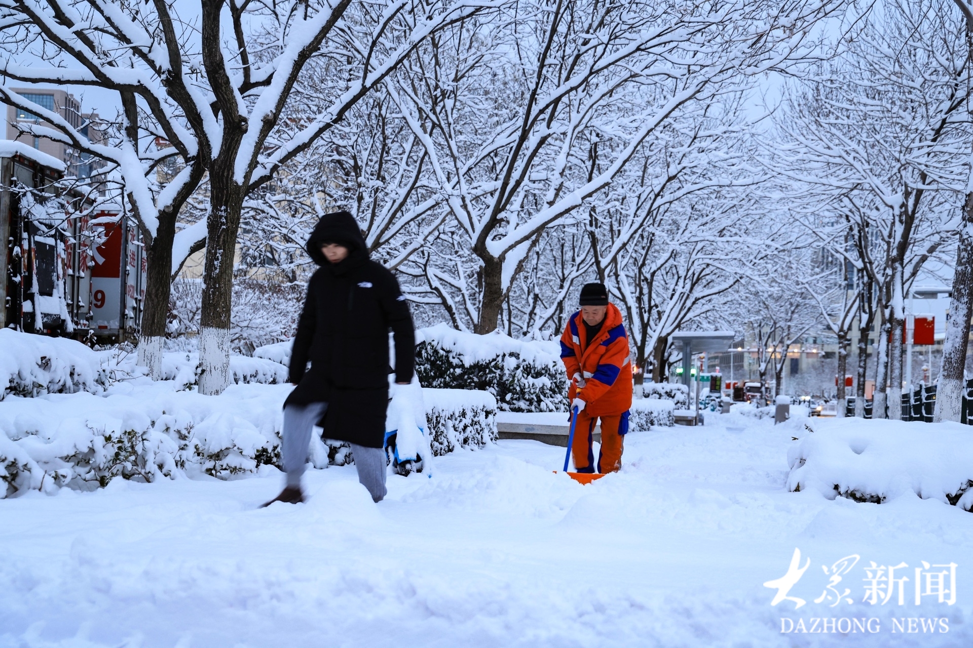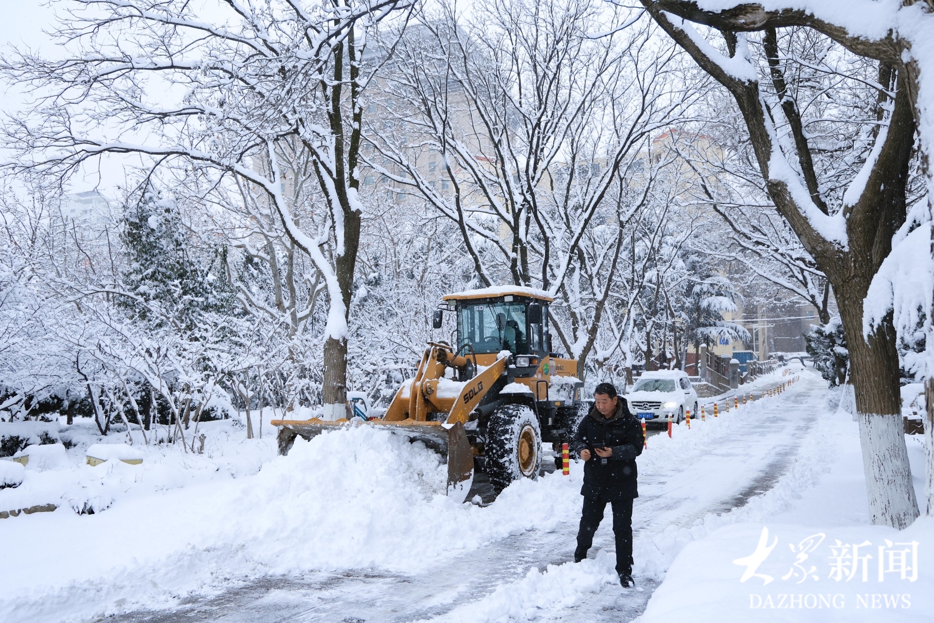 1月11日,威海市多地迎来暴雪天气,为今冬以来最强降雪过程。公路、市政、环卫等部门清雪工作人员通宵作业,全力保障交通通畅。(大众新闻通讯员朱春晓)