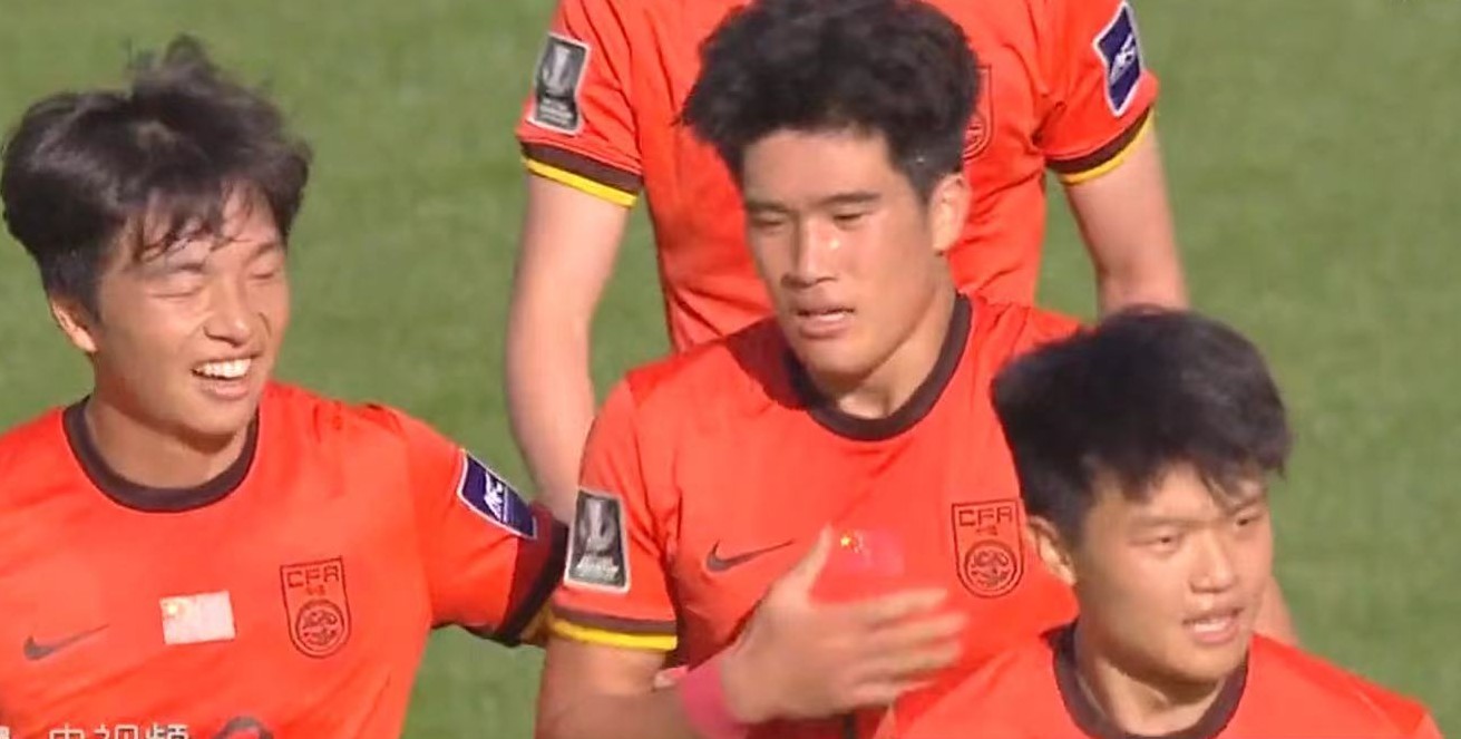 上半场,中国队在场上局面上不占优势,但是在第43分钟凭借一记任意球由彭啸破门,暂时以1:0领先。