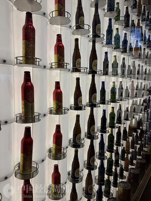 沿着“啤酒长廊”往前走,穿旗袍的小姐姐举着啤酒杯的照片映入眼帘,连玻璃杯里的泡沫都透着独属于那个年代的精致。