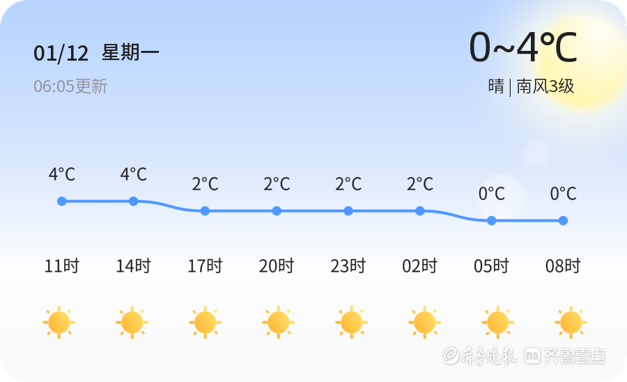 今天是2026年1月12日,农历十一月廿四,威海市迎来了一天的晴朗天气。全市各区气温维持在0℃至4℃之间,南风3级,空气湿度53%,PM2.5指数为20,空气质量良好。市民朋友们可以享受冬日的阳光,但早晚温差较大,出行请注意保暖。