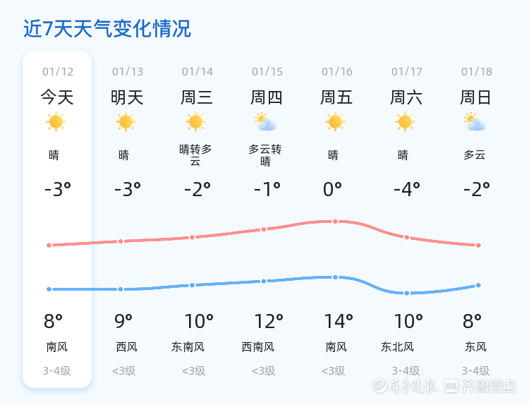 明天,1月13日,泰安市天气继续保持晴朗,但气温略有上升,最高气温将达9°C,最低气温维持在-3°C。相比今天,明天的气温有所回升,市民可以感受到更多的暖意。
