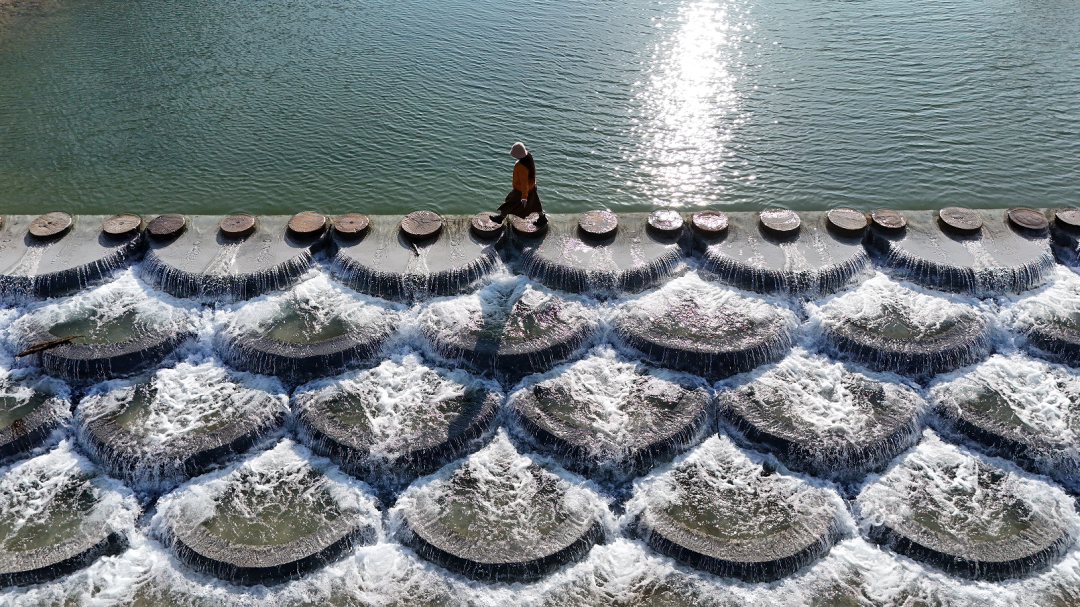 文昌湖区萌水镇水磨村水磨田园综合体景区,将自然小坡升级为网红鱼鳞坝。原来平平无奇的自然小坡,现在变成了一片片叠在一起的“鱼鳞”,冬天水流漫过,结成一层层晶莹剔透的冰凌,阳光一照,闪闪发光,简直像走进了冰雪童话!