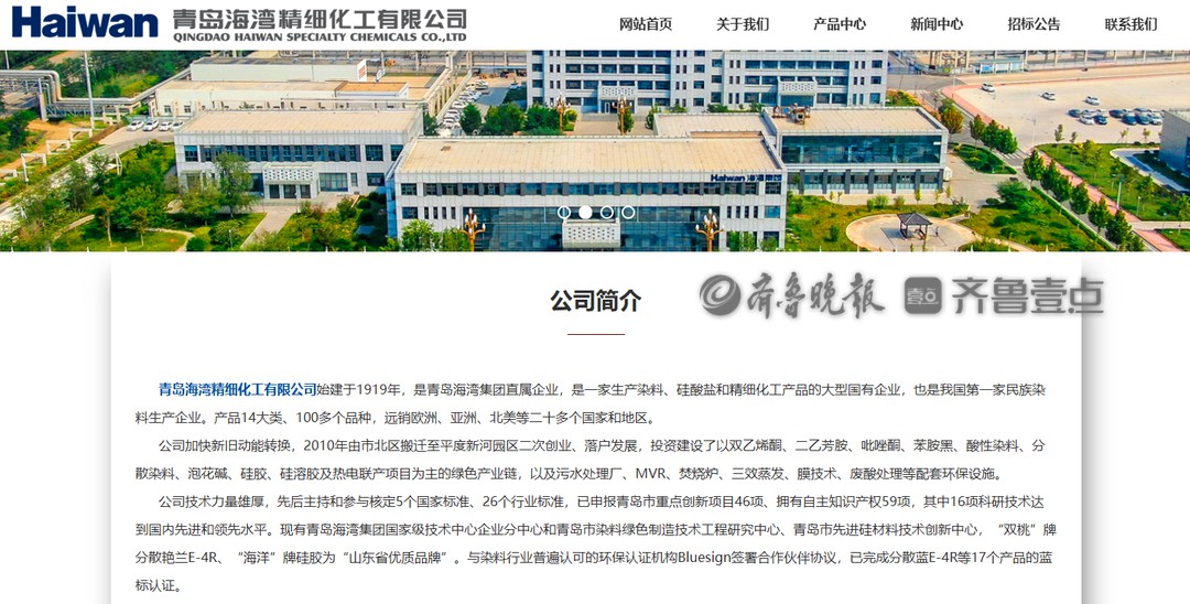 青岛海湾精细化工有限公司始建于1919年,是青岛海湾集团直属企业,是一家生产染料、硅酸盐和精细化工产品的大型国有企业,也是我国第一家民族染料生产企业。产品14大类、100多个品种,远销欧洲、亚洲、北美等二十多个国家和地区。