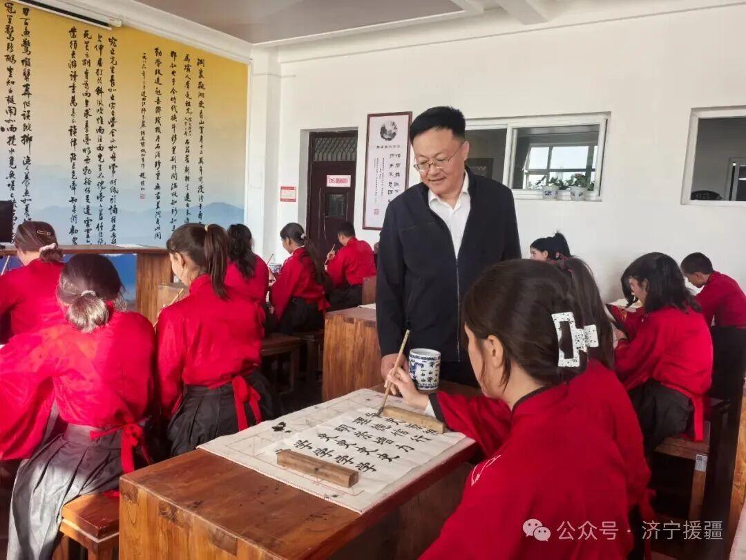 文化浸润是铸牢民族共同体意识的关键,刘传波依托济宁优秀传统文化优势,将名言警句融入校园景观,打造国学沉浸式教育场景。每周升旗仪式上的“校长讲国学”,让《论语》《孟子》的智慧滋养学生心田;礼仪文化、书法课堂等校本课程,让孩子们在实践中感受中华优秀传统文化之美,进一步增强了文化认同与民族自豪感。