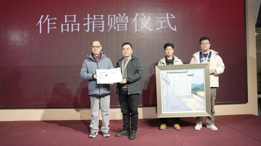 魏院长向泰安市美术馆捐赠油画作品《黑白“徽”系列之七》泰安市美术馆(泰山画院)副馆长(副院长)丁毅颁发捐赠证书