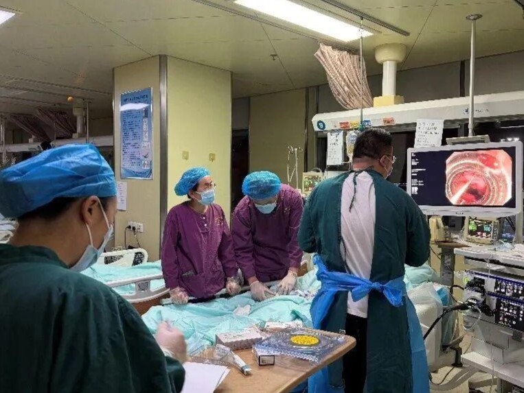 接到紧急会诊通知后,许清华主任星夜从家中赶至医院,迅速启动急诊胃镜救治流程。在气管插管静脉全麻的安全保障下,团队借助内镜快速定位出血点,精准实施组织胶及硬化剂注射,同时对曲张血管进行套扎治疗。经过1个多小时的精准施救,患者出血完全控制,血压、心率逐步恢复正常,成功脱离生命危险,病情转危为安。