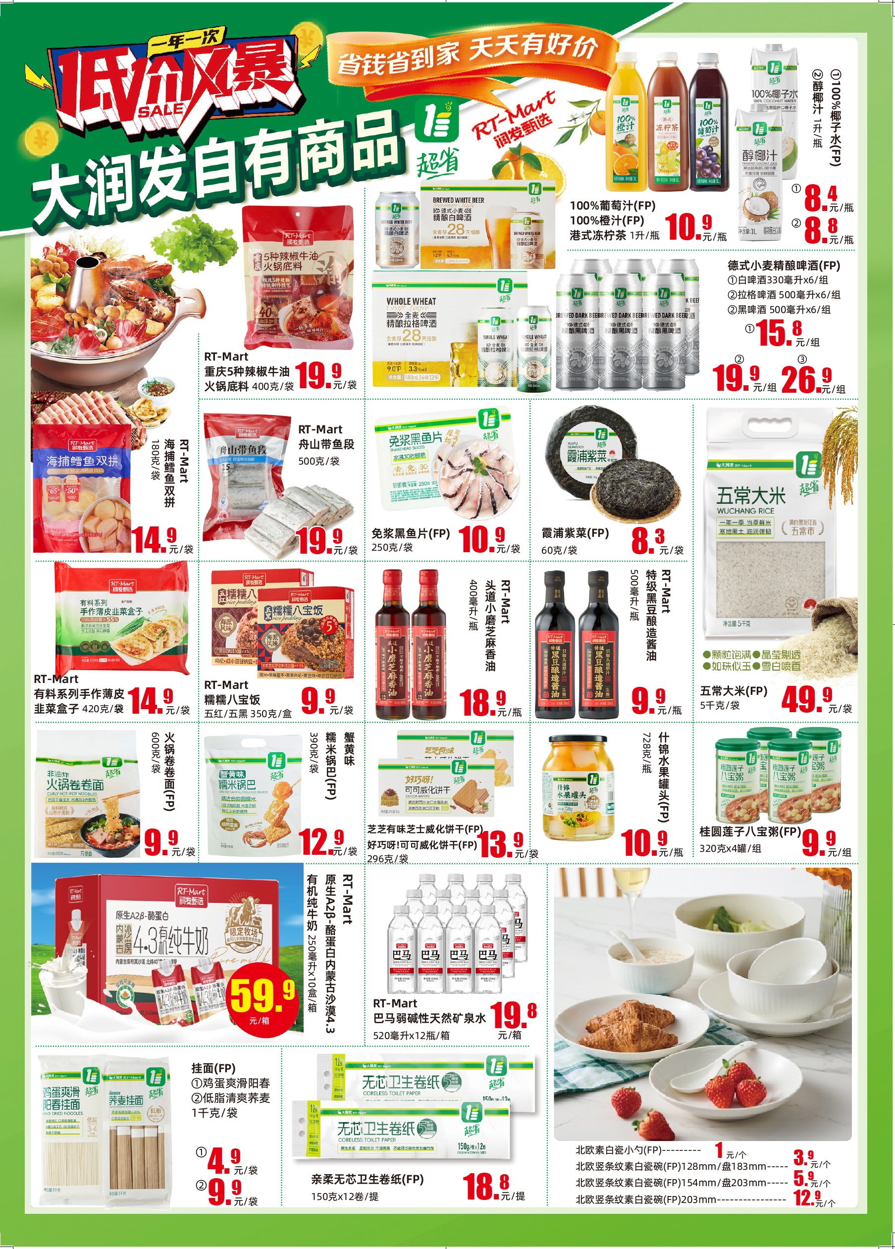 深耕供应链的大润发,此次将自有品牌“润发甄选和超省”的优势产品集中呈现,用“源头直采+严控品质”诠释“实在好货”。想在家煮顿热辣火锅?重庆5种辣椒牛油火锅底料以19.9元/袋的诚意价,还原地道川味;追求便捷餐食?海捕鳕鱼双拼14.9元/袋、糯糯八宝饭9.9元/袋,轻松解决一餐;连日常饮水也有惊喜——巴马弱碱性天然矿泉水19.8元/箱,为健康加分。从调味到主食,从海鲜到饮品,自有品牌以“高性价比+强实用性”成为家庭囤货的安心之选。