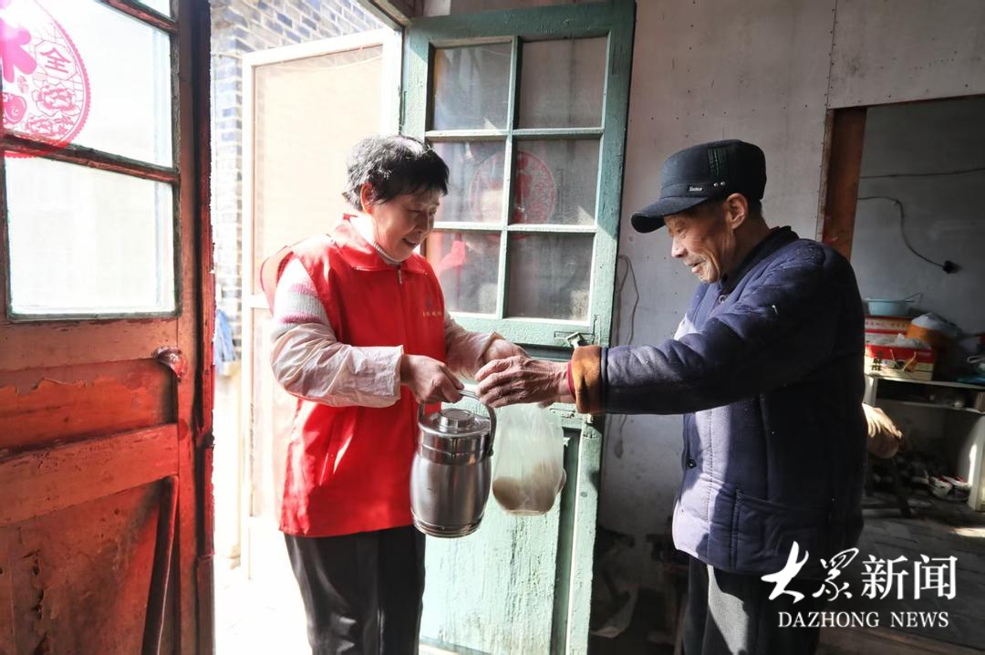 在邱家店镇王林坡村,60多岁的杜玉兰每天都会在村幸福食堂帮忙,端菜、洗碗后,再给80多岁的独居老人宗德安送餐。“孩子在外地,以前中午只能随便对付一口,现在每天都能吃上热乎饭,心里暖和。”宗德安说。