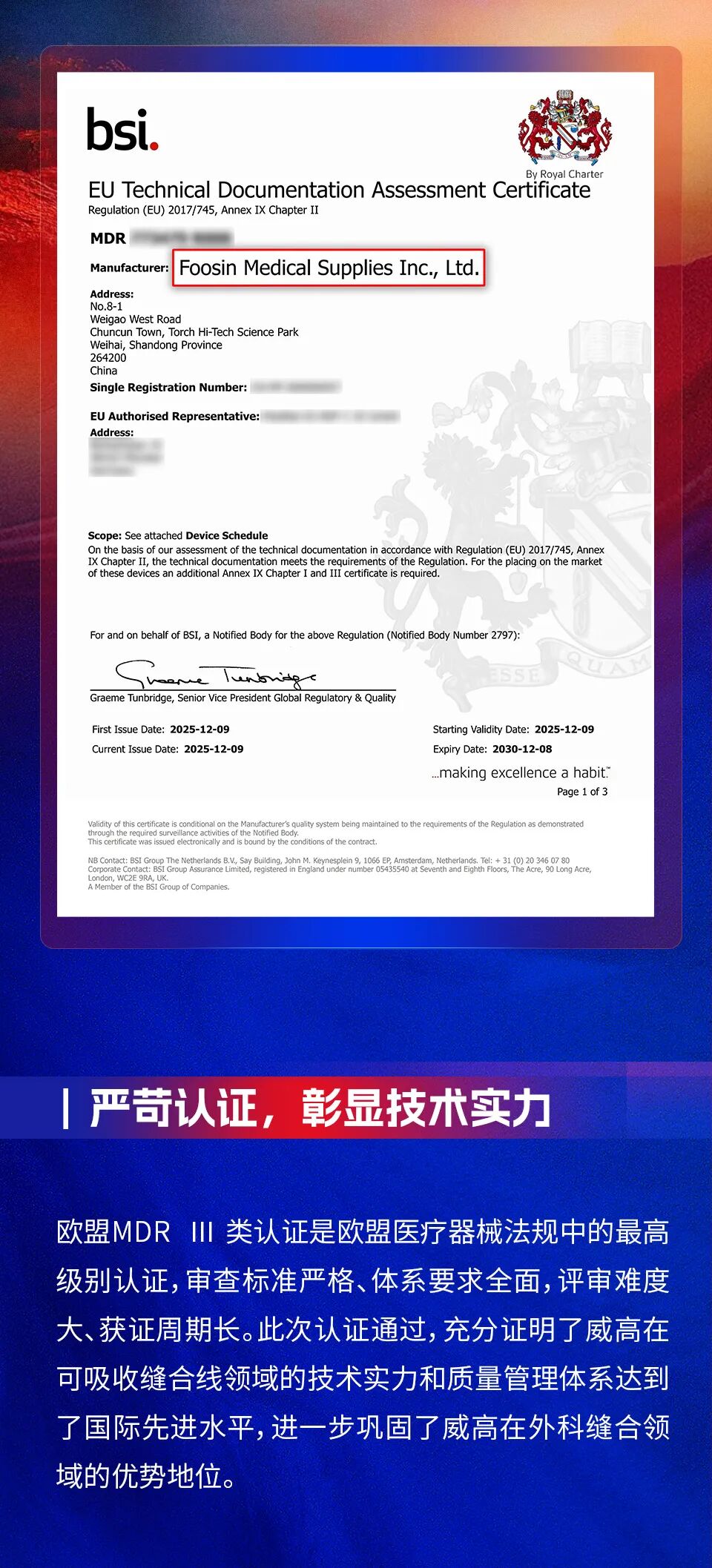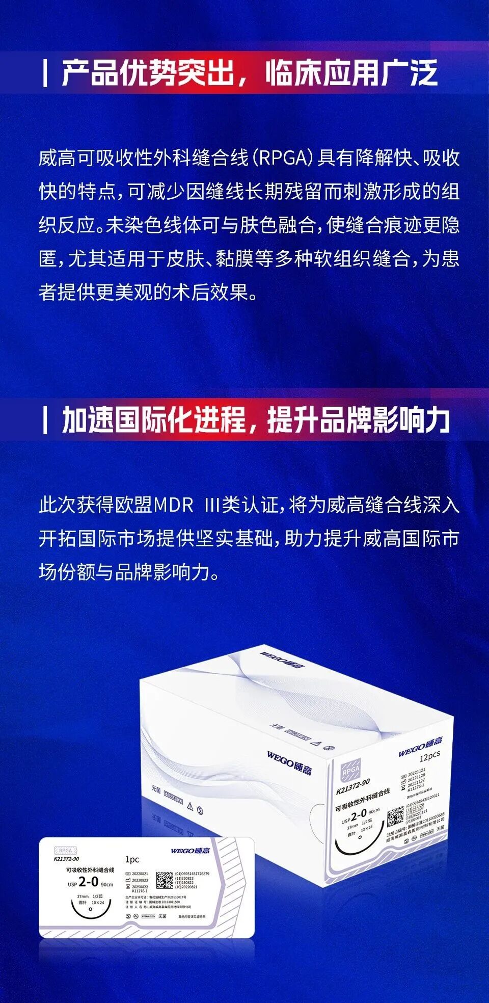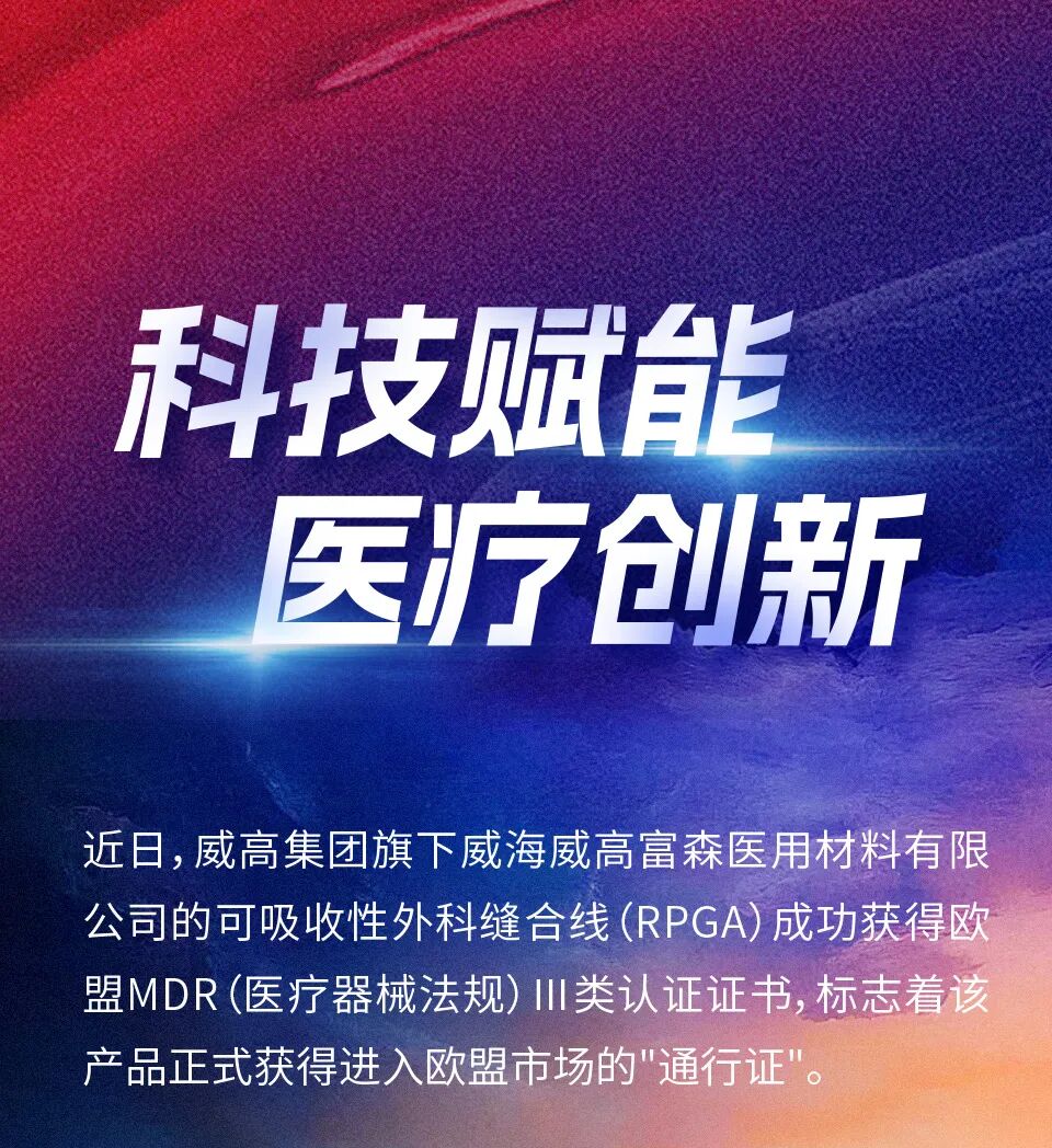 威高可吸收性外科缝合线(RPGA)获欧盟MDR认证
