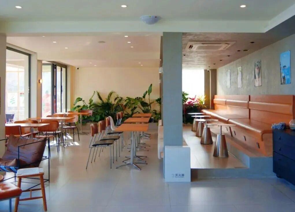 店外露台区是观景的绝佳位置,凭栏而坐,壮阔的大海可尽收眼底,猫头山也仿佛近在咫尺。