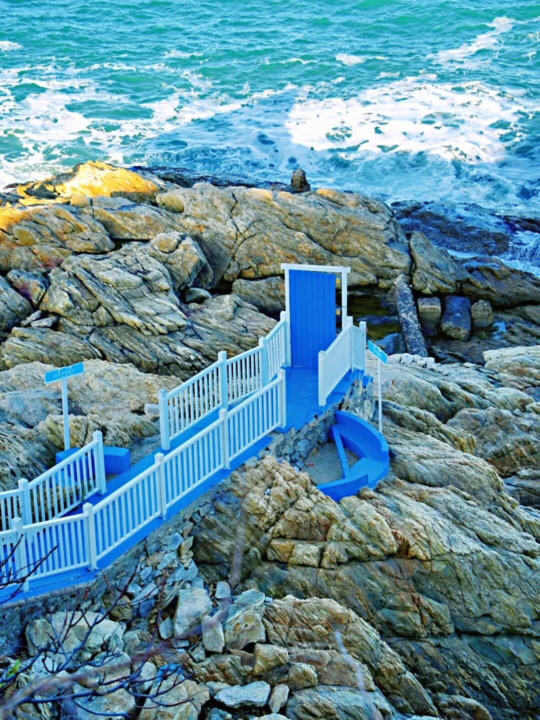 推开小门,辽阔的大海便毫无遮挡地展现在眼前,碧蓝的海水宛如翡翠,两侧礁石环抱更显巍峨壮观。