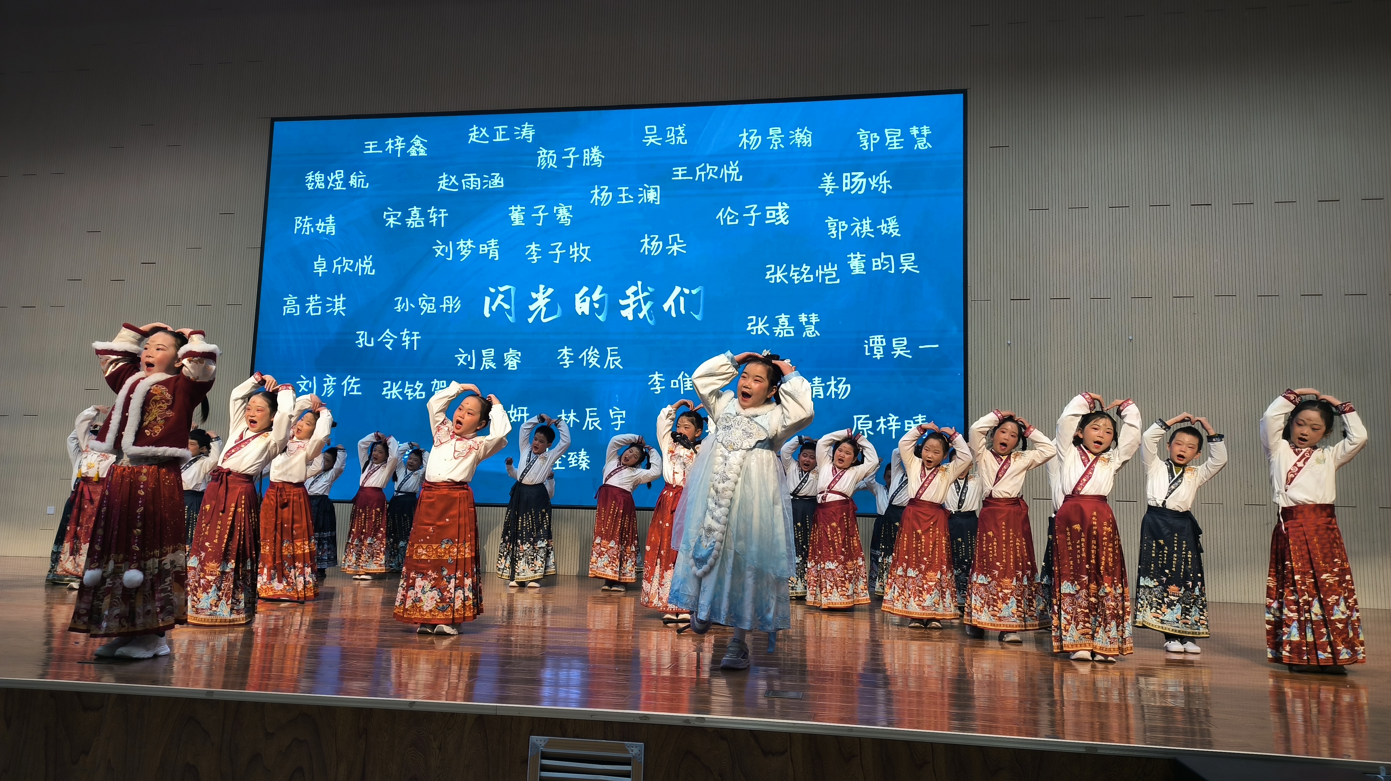 展示现场,各班化身舞台主角。一年级用童声诠释“生长萌芽”,二年级融入汉服、道具演绎动物智慧,高年级则以自然意象、航天精神、历史品格为内核,通过朗诵、合唱、舞蹈等形式让班歌与班级文化深度融合。从墙面的一笔一画到舞台的一曲一词,师生共同让班级文化“活”了起来。