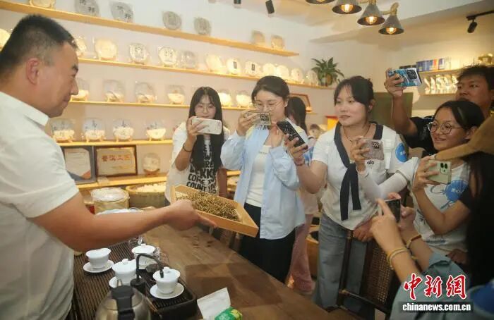 2025年9月20日,同学们在那柯里拍摄茶叶。中新社记者 黄兴鸿 摄
