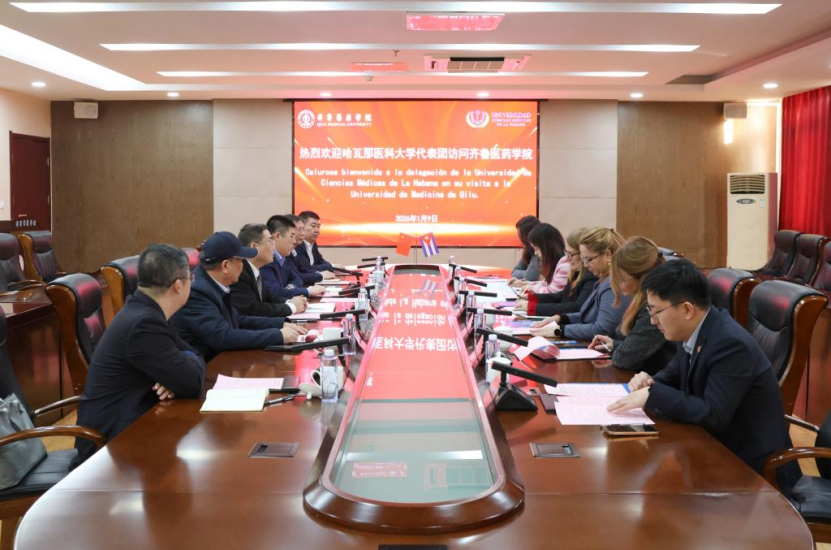 1月9日,古巴哈瓦那医科大学校长约安德拉·穆罗·巴列教授率代表团访问齐鲁医药学院,双方就共建“齐鲁医药学院哈瓦那医学院”举行合作签约仪式。学校党委副书记、校长韩冰出席仪式并致辞,仪式由学校党委委员、副校长杨路主持,继续教育学院、康复医学院、医学影像学院等相关负责人参加。