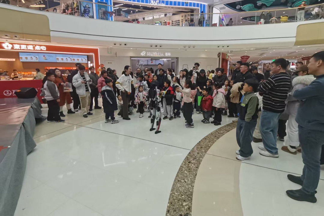 活动现场,联想乐享壹号一亮相便成为焦点。它不仅能完成基本的行走动作,还能根据语音指令完成人形复杂动作,引得现场阵阵惊叹和掌声。大家或驻足观察、举起手机拍照记录,或蹲在机器人旁细究机械结构,不时相互讨论。工作人员耐心讲解了机器人背后的原理,包括编程控制等基础知识,激发了孩子们对人工智能的兴趣。