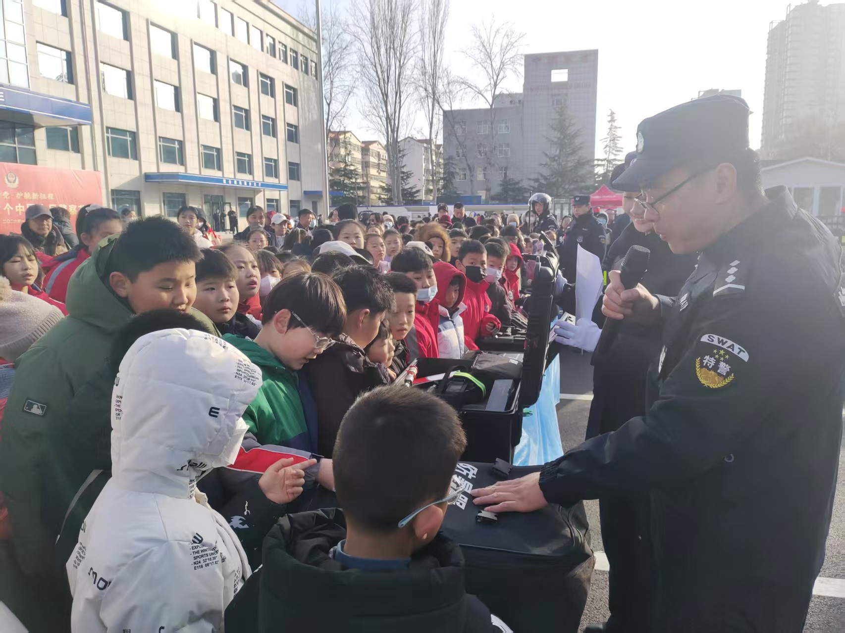 “哇!这特种车也太酷了吧!”“警察叔叔的擒拿术太帅了,我也要学!”1月10日上午,新泰市公安局青云派出所楼前人头攒动、欢声笑语不断,800余名学生与市民齐聚一堂,沉浸式体验警营生活,共同庆祝第六个中国人民警察节。
