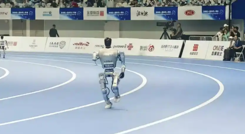 2025年下半年,2025年世界人形机器人运动会上,济南企业山东优宝特智能机器人有限公司打造的人形机器人“行者泰山”因避让串道机器人意外摔倒,手臂掉落。