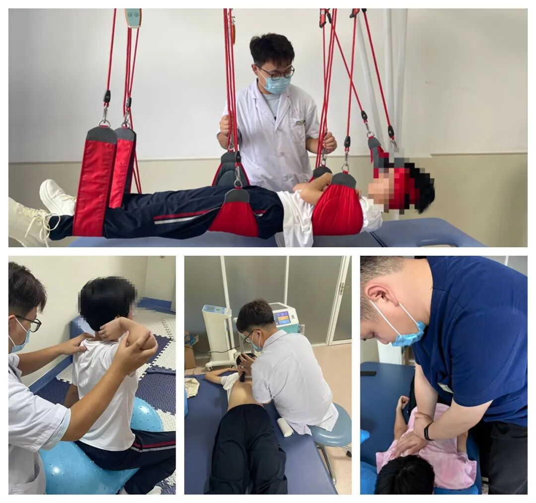 综合治疗方法包括推拿治疗、特定运动训练、放散式冲击波治疗、艾灸、物理因子治疗、日常姿势矫正等。这些方法根据每位学员的具体情况个性化组合应用。