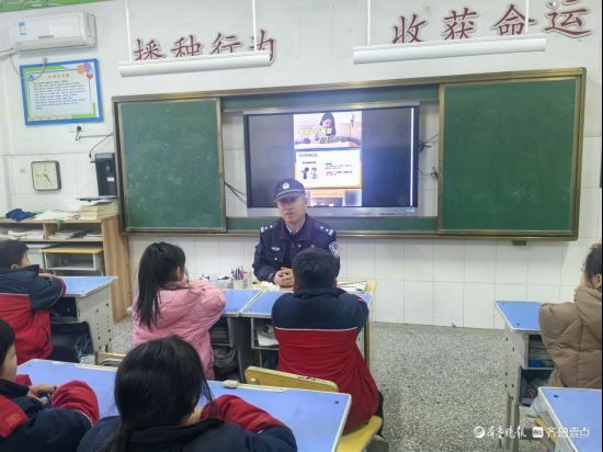 活动现场,民警结合小学生的身心特点,通过多媒体展示、案例分析等形式,深入浅出地讲解了与学生息息相关的法律知识。从防范电信网络诈骗的实用技巧,到遵守交通规则的重要性,再到校园生活中如何远离欺凌、保护自身权益,民警用生动的语言将抽象的法律条文转化为易懂的生活常识,还通过互动提问引导学生主动思考,课堂氛围活跃。