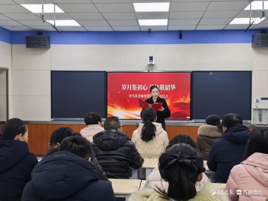 仪式在温情的氛围中拉开序幕。主持人首先代表学校全体师生,向李雪萍老师致以崇高敬意,赞扬她“用爱心浇灌幼苗,用耐心启迪心灵,用责任心诠释教师使命”的职业精神。从初入教坛的青涩新秀到经验丰富的资深教师,李老师数十年如一日坚守三尺讲台,不仅是课堂上循循善诱的引路人,更是学生心中亲切的“大朋友”、青年教师的榜样。