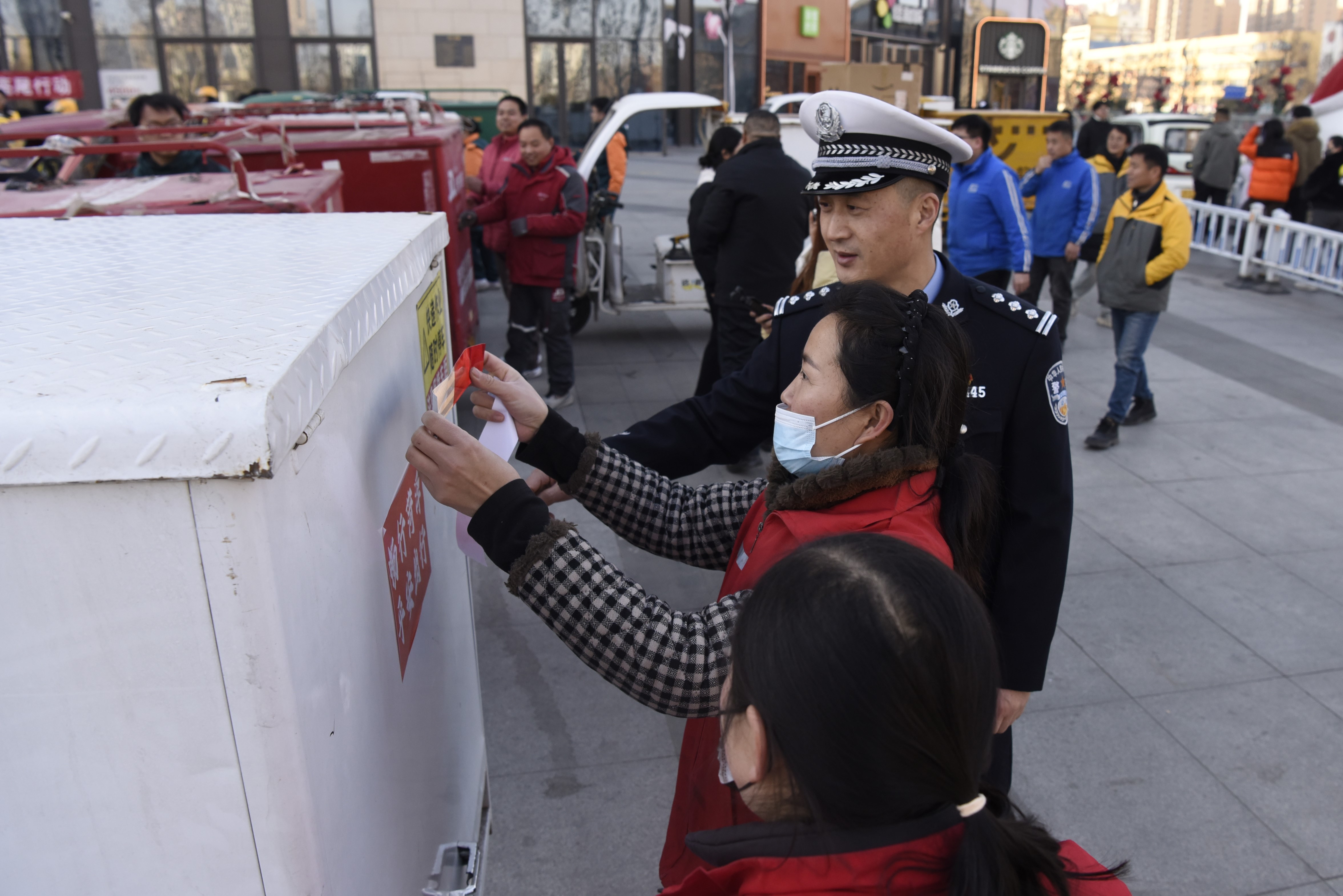 为深入推进"冬季守护一深化道路交通安全隐患集中整治行动",有效防范化解道路交通安全风险,提升快递、外卖行业驾驶人的交通安全意识,有效预防和减少涉电动三四轮车、自行车交通事故,1月12日,菏泽组织开展全省"冬季守护、平安出行,关爱两员、亮尾行动"主题活动。