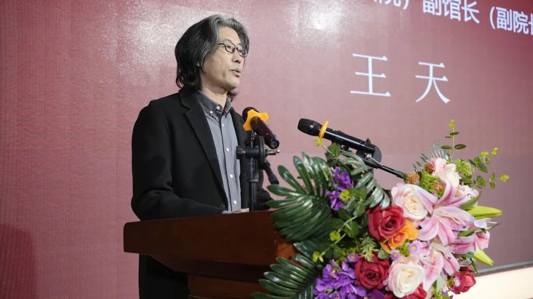 中国国家画院研究员、泰山山水画院院长贾荣志致辞(左)