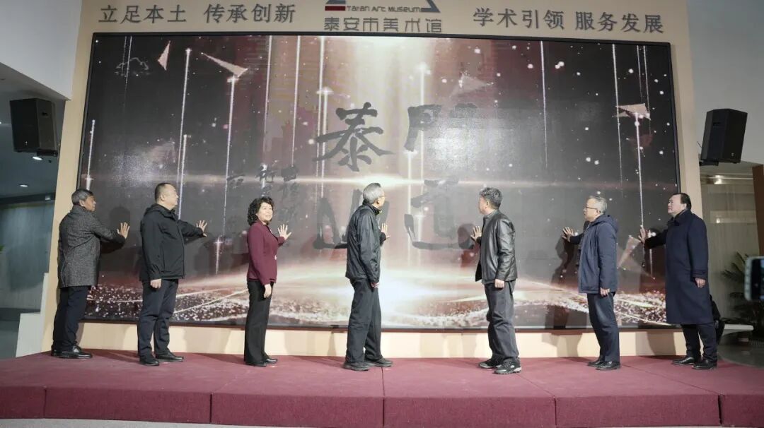 泰安市一级巡视员、山东省政府参事徐恩虎,泰安市人大副主任、泰安市泰山文化传承与高质量发展推进委员会党委书记戴冰,泰安市政协副主席、民革泰安市委主委朱丽,泰安市文联党组书记、主席李建蔚,泰安市文化和旅游局党组副书记、副局长高文嵩,山东省中华文化促进会副会长曹步云,龙口市美术馆馆长王英顺共同启动开幕仪式