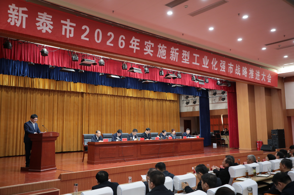 “工业稳则经济稳、工业兴则百业兴、工业强则新泰强。工业是新泰的‘看家本领’,更是我们奔向未来的‘硬核底气’!”市委书记赵永斌的讲话掷地有声。他回顾了近年来新泰新型工业化建设及产业转型发展的系列成果,并为2026年的发展定调。赵永斌将新型工业化比作一场“攻坚战”,要求全市上下以“五个不动摇”为战略定力,深耕“123X”产业赛道,以“等不起”的紧迫感、“慢不得”的危机感、“坐不住”的责任感,握紧接力棒、跑出加速度,因地制宜发展新质生产力,推动“工业新泰”向“数实融合的工业城市”转型,把工业打造成新泰一张靓丽的名片。