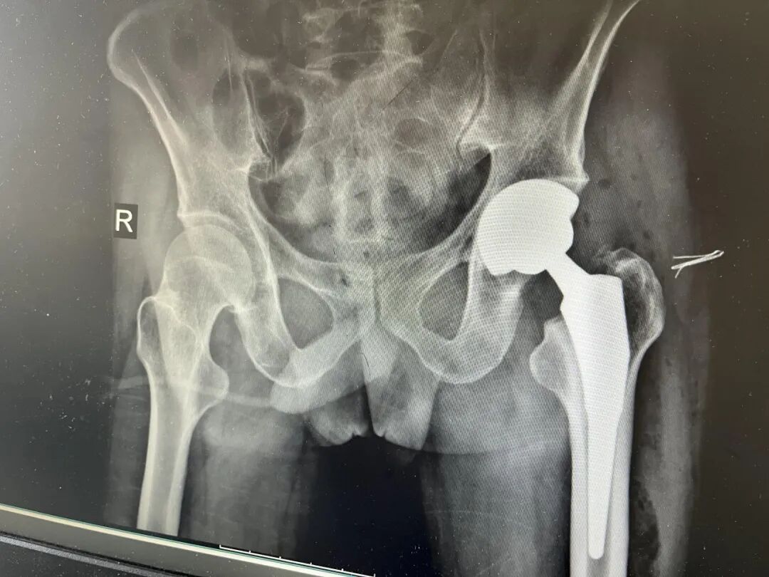 “这类患者手术风险很高,”王金台主任医师指出,“酒精依赖不仅影响神经系统功能,还会导致肝功能异常、凝血障碍、心血管系统不稳定,且戒断期易诱发癫痫、谵妄,甚至危及生命。在这样的状态下进行手术,无异于在‘风暴中航行’。”同时,患者酒精依赖,如果行内固定治疗,术后对患者依从性要求很高,如患者不能配合,很可能造成内固定失效,且患者长期酗酒,股骨头坏死几率极高。结合患者实际情况并经多学科会诊(MDT)后,王金台主任团队决定为患者实施全髋关节置换术。