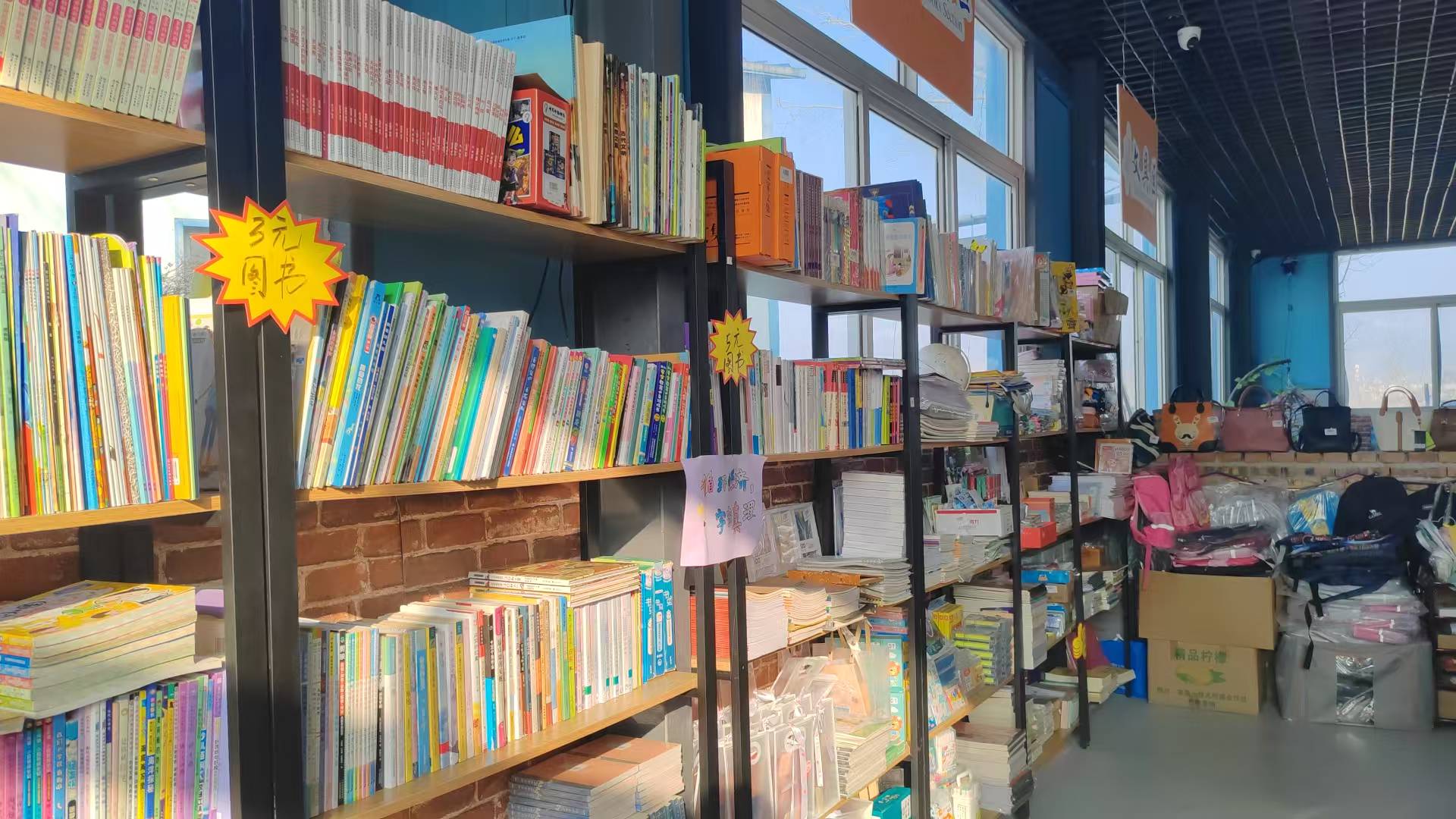 平常闲置的仓库一半化身为整洁明亮的超市式销售区域,另一半则成为井然有序的操作间。销售区域内,书籍、衣服、生活用品、玩具等商品分类明确,整齐摆放。每一件商品都经过细致的清洁、整理和消毒,还统一贴上了价格标签。帆布包、画作等学校孤独症儿童亲手做的文创产品,也被整齐地摆放在货架上。
