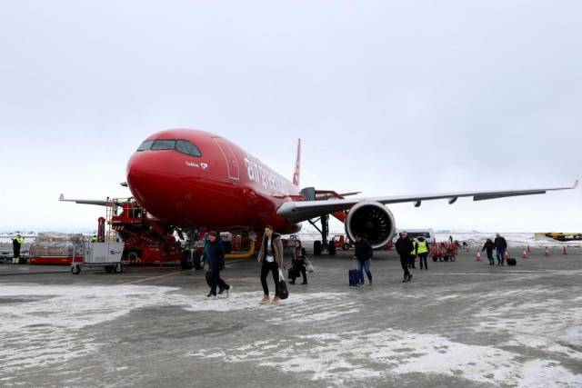 2025年3月18日,人们乘坐飞机抵达丹麦自治领地格陵兰岛首府努克。新华社记者赵丁喆摄