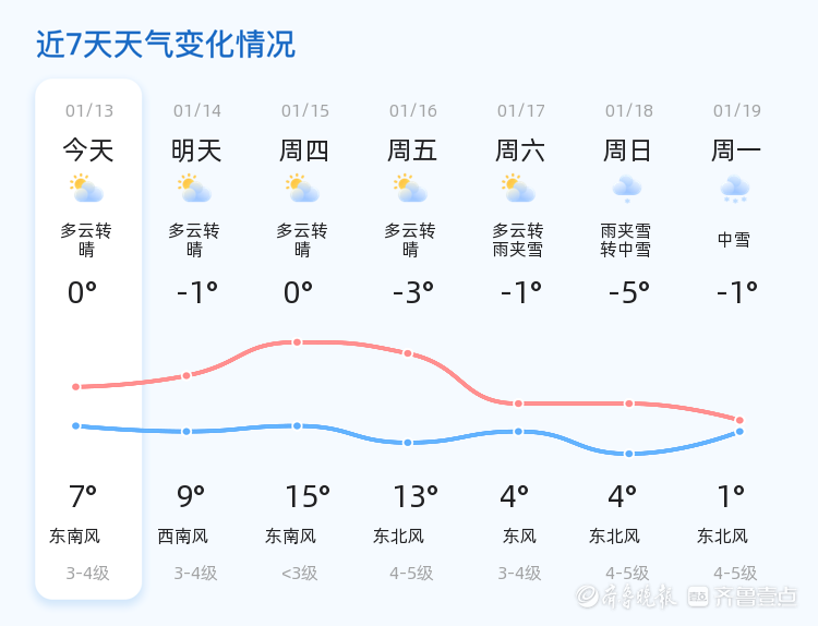 今天是1月13日,星期二,农历十一月廿五。临沂市今天天气多云转晴,北风4级,气温在0℃到7℃之间。早晨气温较低,为-0.1℃,湿度为49%,PM2.5指数为158,空气质量为中等。各区天气情况基本一致,多云转晴,风力适中,适合市民户外活动。明天临沂市天气将继续以多云转晴为主,气温有所回升,最低气温-1℃,最高气温9℃,风向转为西南风,风力3-4级。与今天相比,明天的天气更加晴朗,气温回升,市民可以适当减少衣物,享受冬日的温暖阳光。未来三天,临沂市天气趋势总体平稳,最高气温将达到15℃,最低气温-1℃。气象部门提醒市民,未来三天温度变化较大,建议根据天气情况适时增减衣物。特别是周末期间,天气将出现雨夹雪和中雪,风力较大,市民需做好防寒保暖措施,确保出行安全。温馨提示
