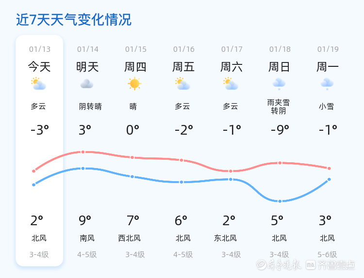 未来三天,威海市天气以晴或多云为主,气温将在0℃到9℃之间波动。1月15日为晴天,气温0℃到7℃;1月16日为多云,气温-2℃到6℃;1月17日为多云,气温-1℃到2℃。提醒市民注意天气变化,及时增减衣物,防范感冒。