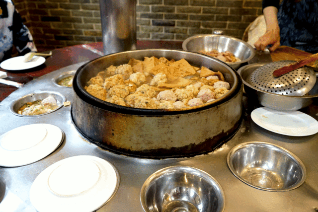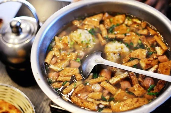 周村煮锅的特点是味道可口、品种多样、随热随吃,煮锅内一般放置肉丸子、豆腐丸子、萝卜丸子、炸豆腐页、肥肠等菜肴,是来了周村必尝的特色美食!