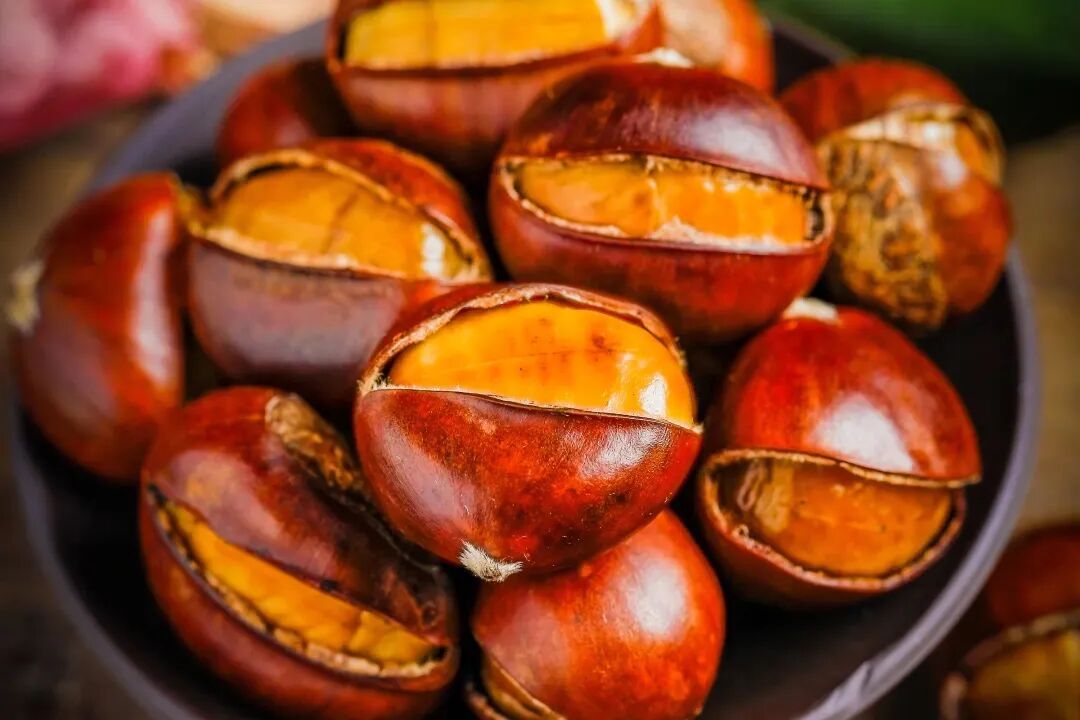 冬日里的另一份甜蜜诱惑,来自一袋热乎的糖炒栗子。铁锅与粗砂一同翻炒,栗子在锅里“噼啪”作响,炒好后趁热剥开,果肉粉糯香甜,暖手又暖心,是冬日里最治愈的小食。