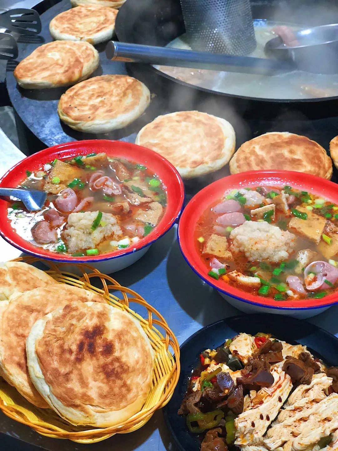 在淄博,最出名的是沂源全羊、淄川的太河大锅全羊。沂源大锅全羊浓香四溢,一口汤,就是一场盛宴。全羊以本地黑山羊为原材料,讲究活杀现煮、大火慢炖……在这渐冷的季节,喝上一碗羊汤,搭配羊油辣子、葱花油饼,味道鲜美,足以为你寒冷的身躯带来十足的温暖。