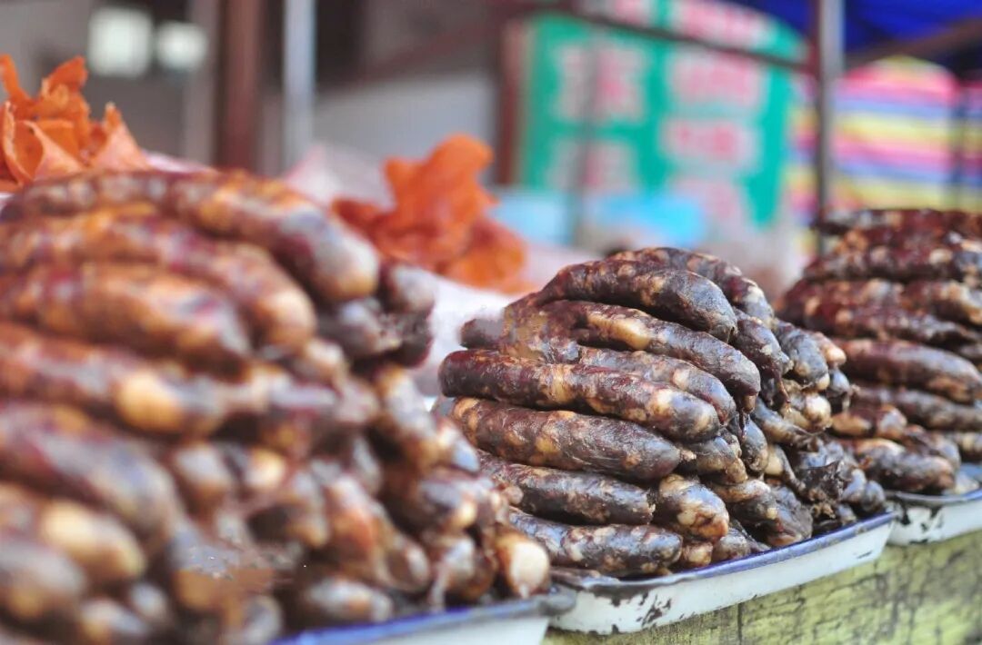 博山香肠属于博山传统的风味小吃,来自民间,扎根乡土,每到过年,都能看到有些人家门口挂的那一串串的特色香肠。