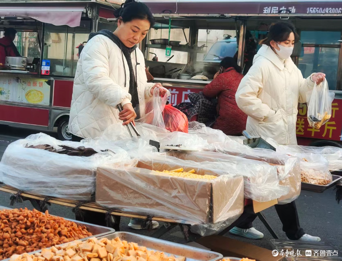在临沂沂河新区埠前店,集市街头就是美食的天堂,各种小吃琳琅满目。 高军 摄