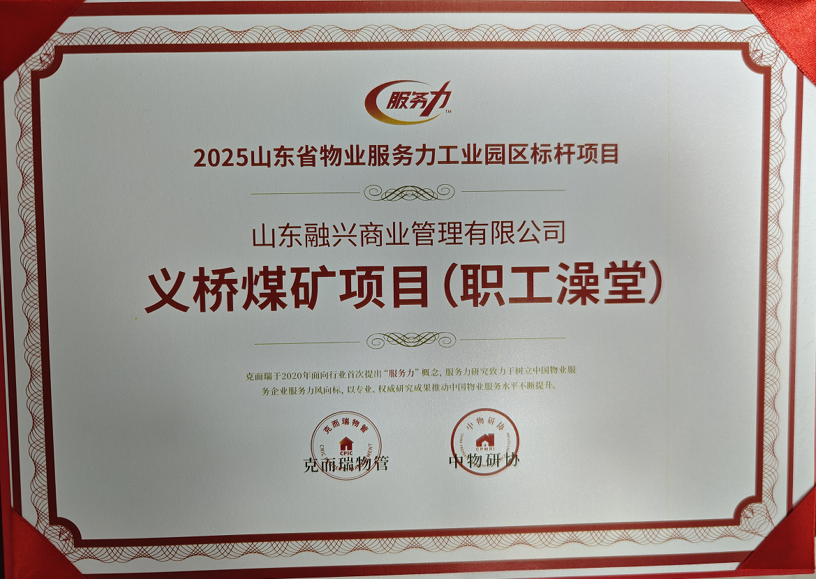 同时,在区域细分榜单中,融兴商业亦获评“2025山东省国有物业服务企业综合实力二十强”第11名和“2025物业服务力济宁TOP5”第4名。公司旗下阳城煤矿项目与义桥煤矿项目双双获评“2025山东省物业服务力工业园区标杆项目”,同时义桥煤矿项目(职工澡堂)获评“2025山东省物业服务力标杆场景”。这是对企业的双重肯定,彰显了融兴商业在物业服务领域的深厚底蕴与强大实力。