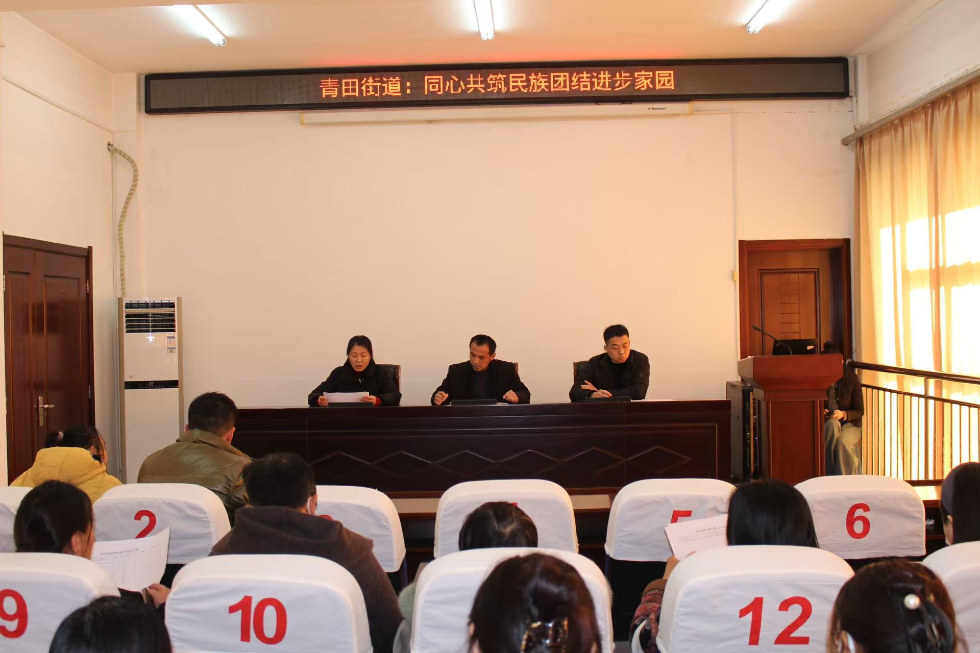 青田街道便民服务中心主任王丽围绕“同心共筑民族团结进步家园”这一主题,安排少数民族人员信息统计工作。强调村级网格员,是民族团结政策落地的“最后一米”,也是民情收集的“传感器”和民族团结氛围的“营造者”,要主动关心少数民族群众需求,尤其是流动人口和困难家庭,需要帮助时提供服务。后期办事处会组织少数民族人员多开展邻里节、民族文化手工、结对互助等丰富多彩的文艺活动,促进各民族交往交流交融。