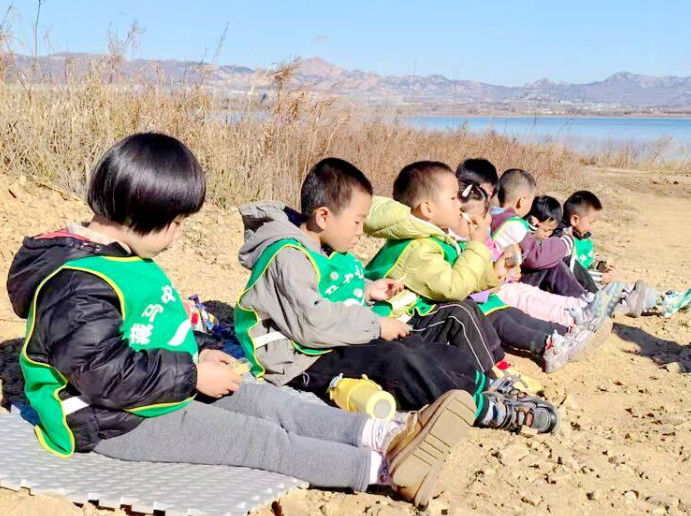抵达藏马镇最大的陡崖子水库后,宽阔的平台成为了孩子们的天然活动场。大家围坐在一起,沐浴着温暖阳光,欣赏波光粼粼的湖面与远处的青山绿树,分享提前准备的零食水果,体验野外加餐的独特乐趣。清脆的笑声与风声交织,构成了一幅惬意的冬日画卷。
