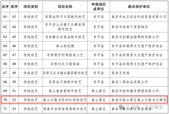1月2日,泰山石敢当朱砂红传拓技艺、泰山谢氏御香制作技艺被列入泰安市第十一批市级非物质文化遗产代表性项目名录。