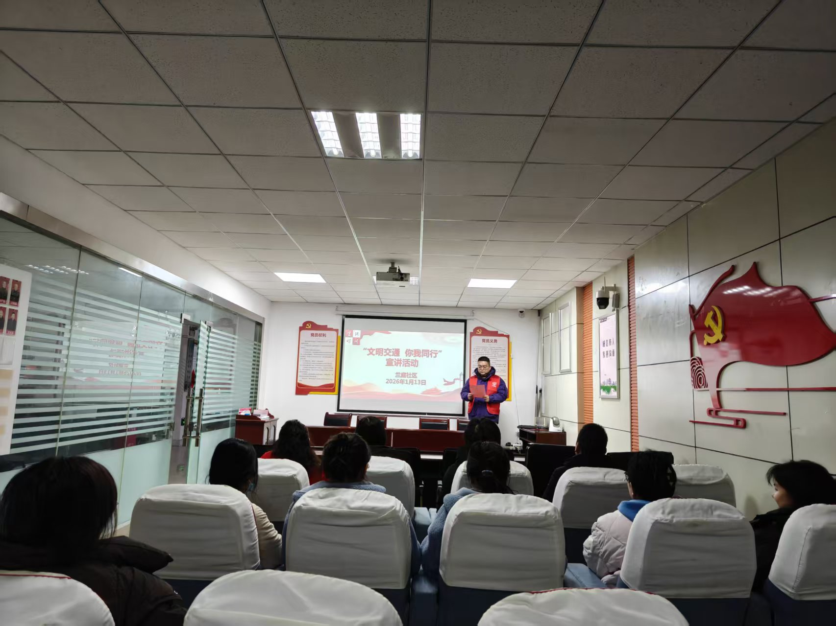为切实提升广大居民的交通安全意识和文明素养,营造安全、有序、畅通的道路交通环境,1月13日,济宁高新区洸河街道兰庭社区在金色兰庭小区红帆驿站开展“文明交通 你我同行”宣讲活动。
