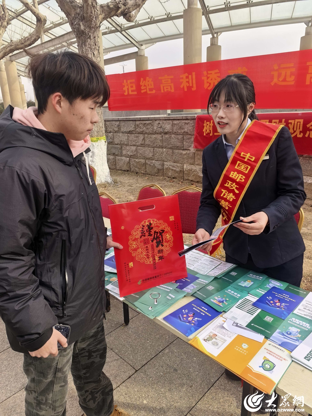 活动现场,醒目的标语横幅、图文并茂的宣传展板、随时能咨询的“金融问诊台”,以及工作人员手中递出的“反诈秘籍”宣传折页,吸引了众多师生驻足。邮储银行日照市分行副行长李海峰亲自上阵,化身“金融讲师”,将“云养殖”“黄金托管”“虚拟币投资”“养老陷阱”等看似诱人、实则暗藏风险的骗局拆解得明明白白。“高收益往往伴随着高风险,你看中的是收益,骗子看中的是你的本金。”李海峰副行长用大白话揭示了非法集资的“画皮”,叮嘱同学们要擦亮眼睛,捂紧口袋,遇事多问、多查、多核实。
