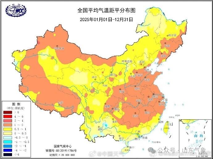 据统计,刚刚过去的2025年,全国平均气温11.0℃,较常年(9.9℃)偏高1.1℃,打破2024年10.9℃纪录,再次创1961年以来历史新高。全国大部地区气温偏高超过0.5℃。其中新疆、辽宁、河北、江西、湖北、山东、天津、西藏、湖南、河南、吉林、上海、陕西、安徽、浙江、江苏等16个省(市、区)气温均为1961年以来历史最高。